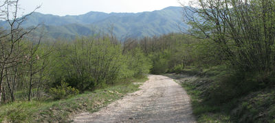 L’inizio del percorso è piuttosto soft, si parte con strada asfaltata e larga, che cede quasi subito il posto ad una sbrecciata mentre si lasciano alle spalle le ultime abitazioni del borgo, quindi si sale con pendenza regolare affiancando di tanto in tanto alcuni caseggiati rurali, prima che la stradina si tramuti in un sentiero vero e proprio (traccia comunque veramente ampia) ed inizi a salire in maniera più marcata verso il crinale.