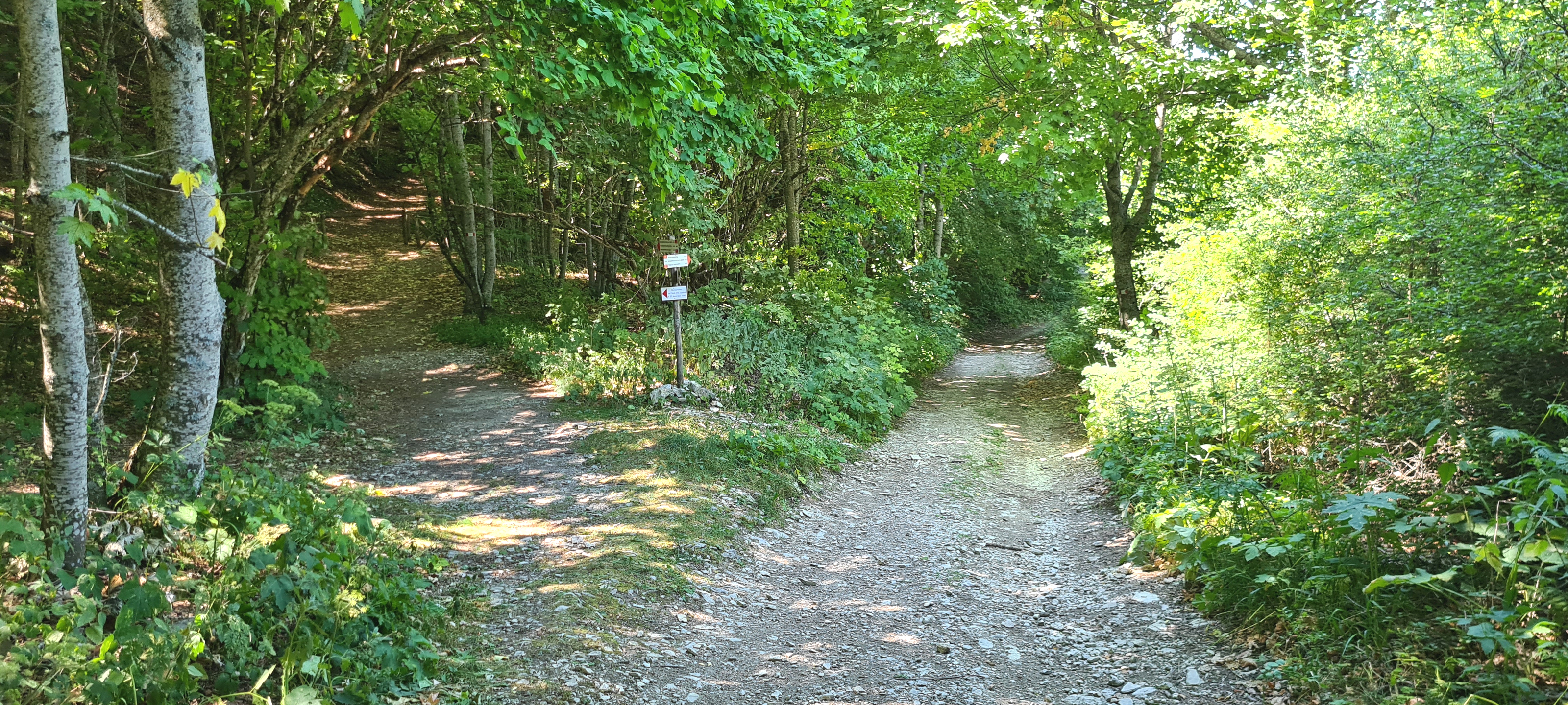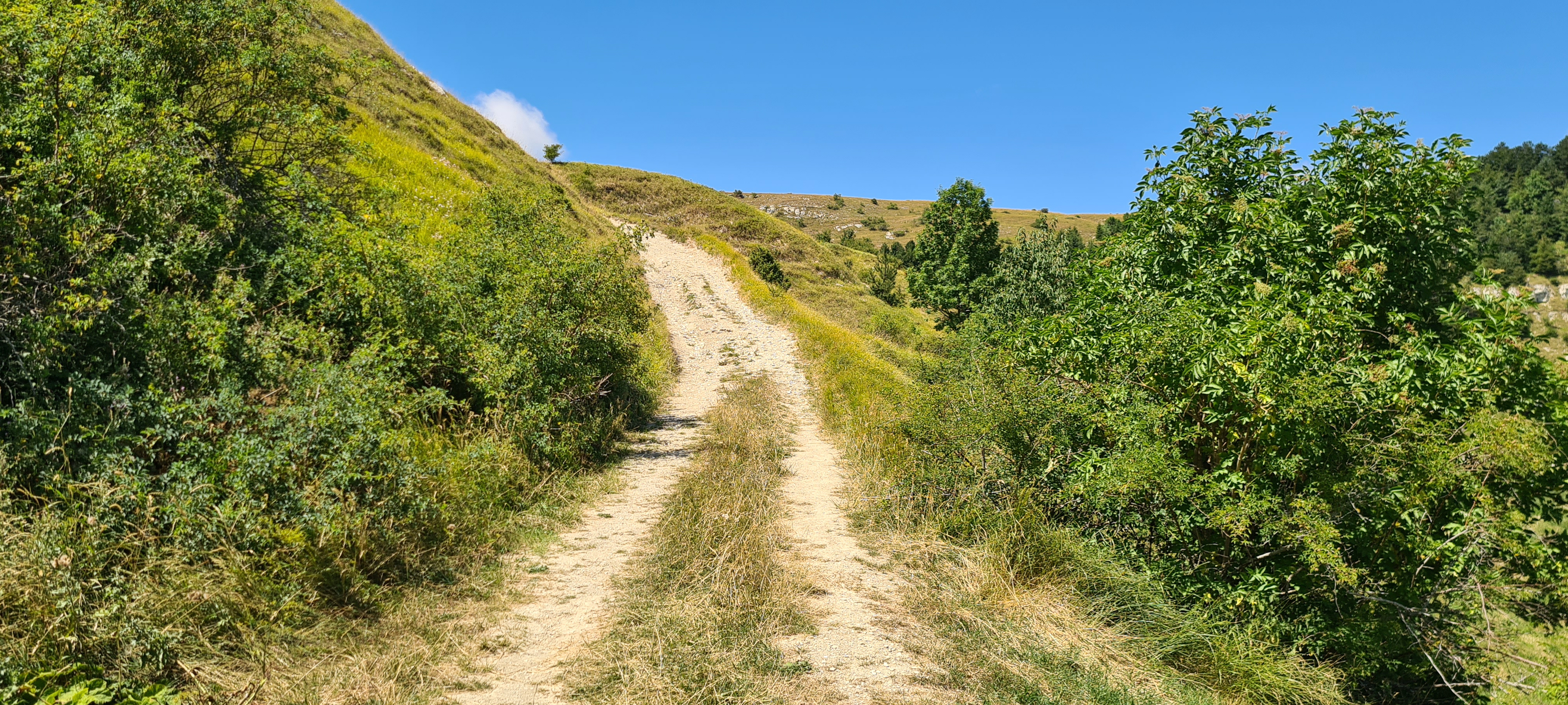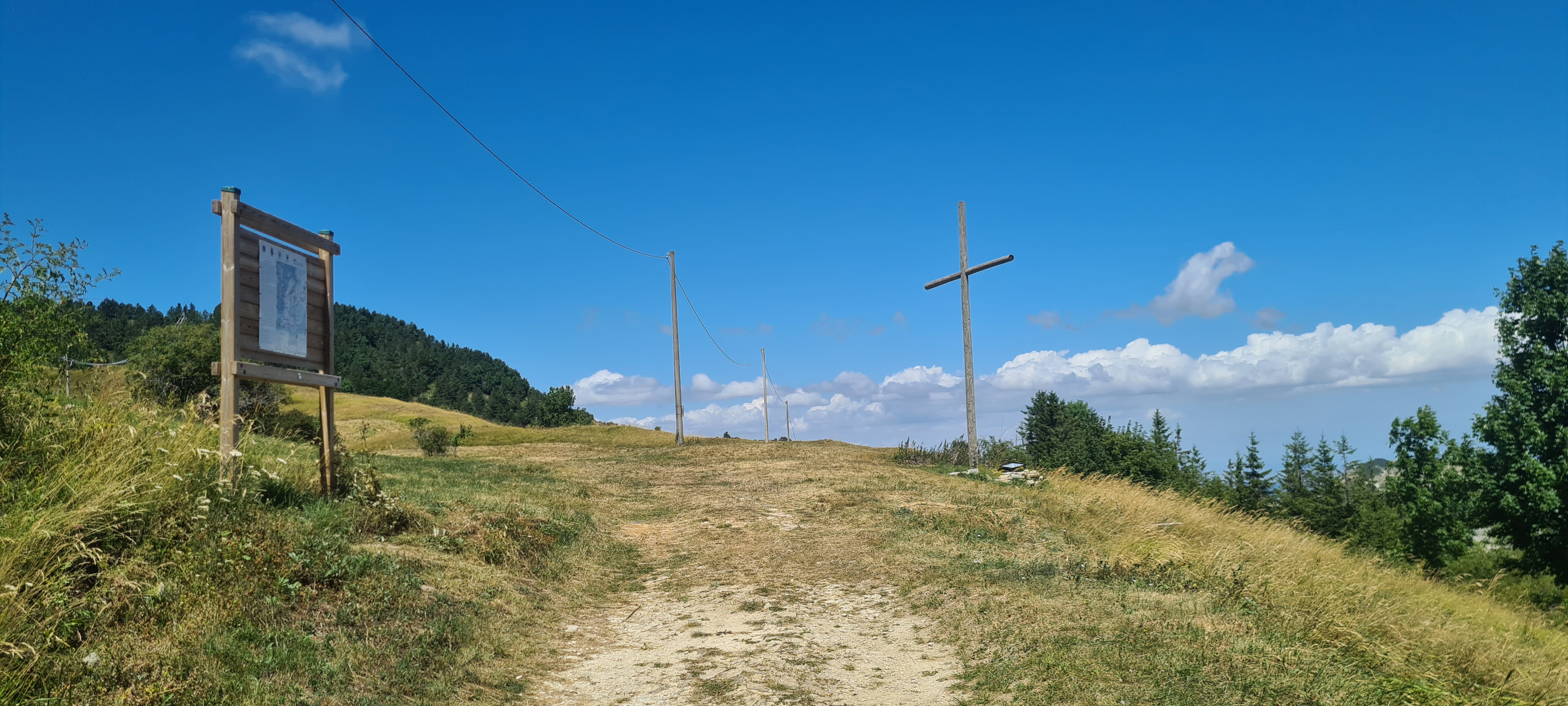Terminata la sosta presso il memoriale si riprende a salire con discreta pendenza, si supera uno stretto tornante, si attraversa un cancelletto di legno e si giunge sui prati, a poca distanza dalla biforcazione incontrata in precedenza. Con una breve discesa si raggiunge nuovamente il sentiero completando l'anello.