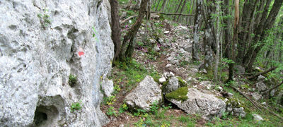 In breve si raggiunge l’incrocio con il sentiero 299, che si stacca sulla destra diretto alla sella del Corno (questa via, sebbene sia comunque abbastanza impegnativa, è una valida alternativa per chi volesse raggiungere il Corno evitando l’esposta cresta del sentiero 29), quindi si prosegue per circa un chilometro all’interno del rado bosco, sempre in leggera salita e senza incontrare elementi degni di rilievo.