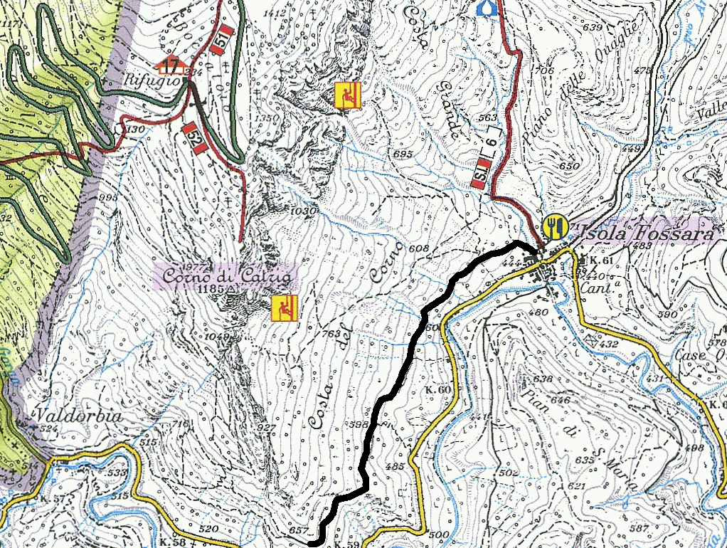 Il sentiero 29 bis (numerato come 285 nella segnaletica del Parco del Monte Cucco, al quale amministrativamente questo itinerario appartiene, trovandosi completamente in territorio umbro, ma geograficamente si tratta di un percorso posto all’interno del massiccio del Monte Catria) è un importante raccordo di media lunghezza, circa 2km, che collega Isola Fossara con il sentiero 29, che conduce alla cresta del Corno del Catria.