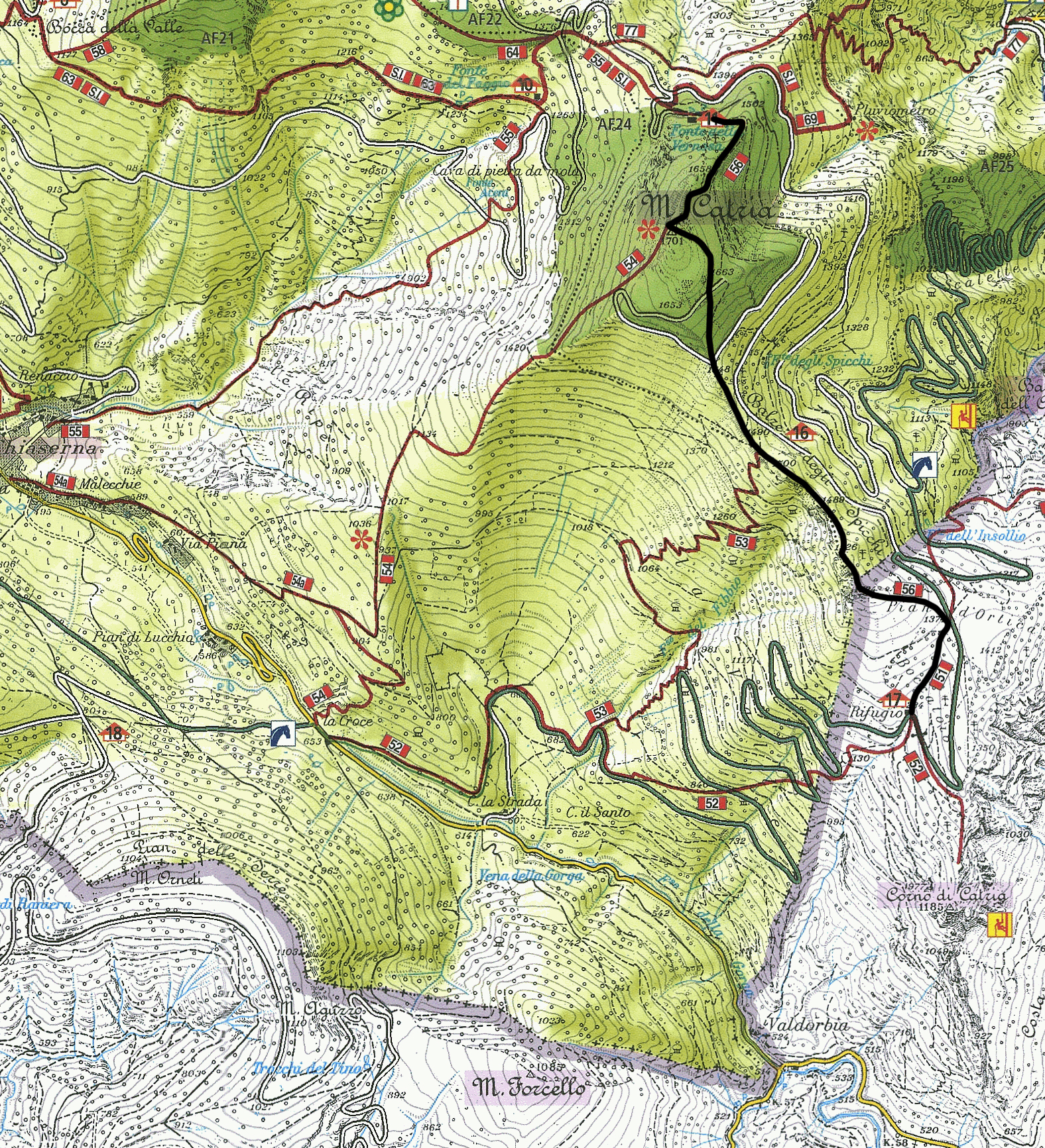 Il sentiero 56 (cui è stato attribuito il nuovo numero 252 dopo la risegnatura) ha inizio dal Rifugio Boccatore, situato a 1234 metri di quota sul versante sud del Monte Catria. Il rifugio, recentemente ristrutturato ma costantemente chiuso, è raggiungibile anche in macchina (non consigliato per via del fondo fortemente sconnesso) attraverso una scomoda carrareccia che sale da Ca' La Strada oppure, in maniera peraltro molto più soddisfacente, percorrendo il sentiero 52 che proviene dal Passo La Croce (in questo caso si aggiungono 600 metri di dislivello, ma ne vale sicuramente la pena).