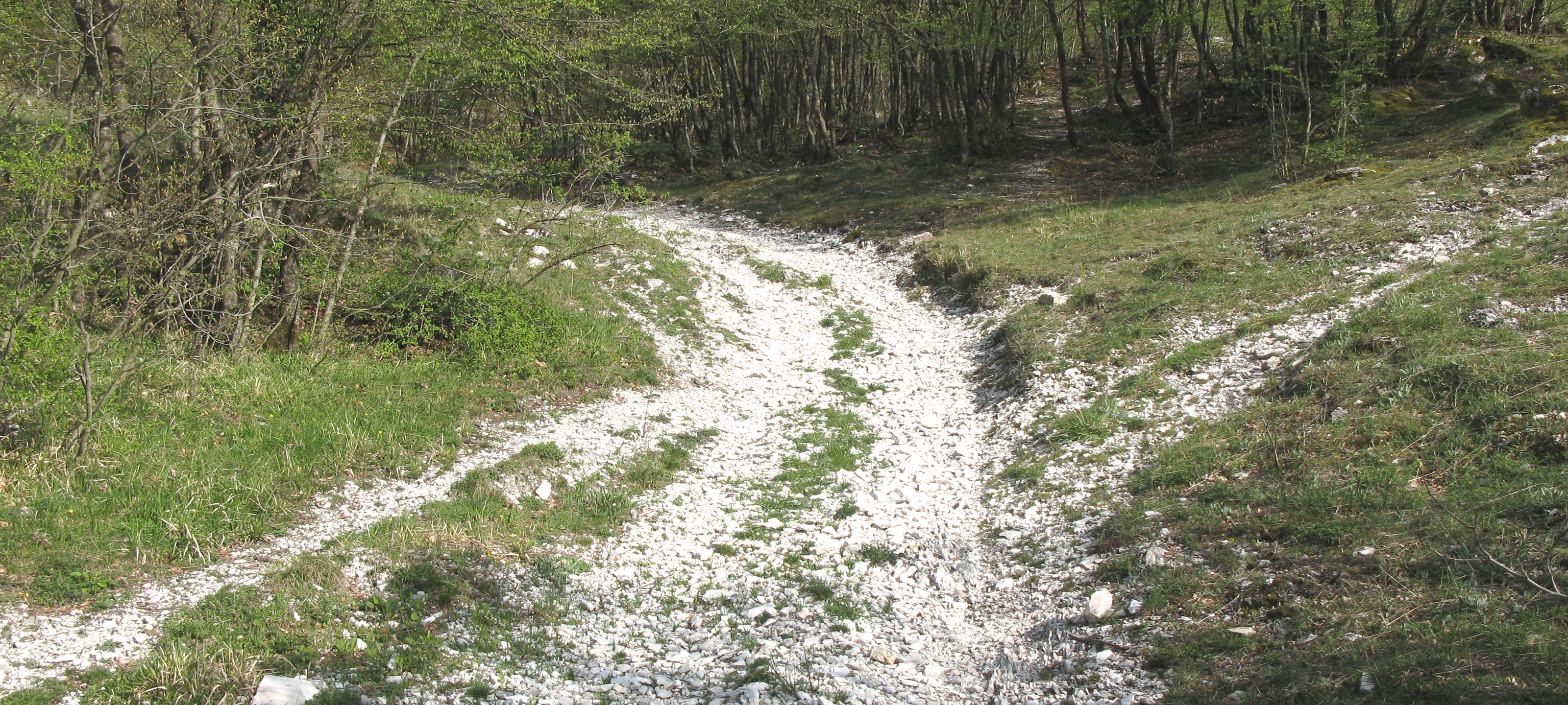 Procedendo nel bosco, tra stretti tornanti intervallati da brevi traversi, si guadagnano rapidamente circa 250 metri di quota, fino a raggiungere nuovamente l’asfaltata quando l’altimetro ha da poco superato i 1000 metri e la vegetazione inizia a diradarsi passando gradualmente da bosco a prato.