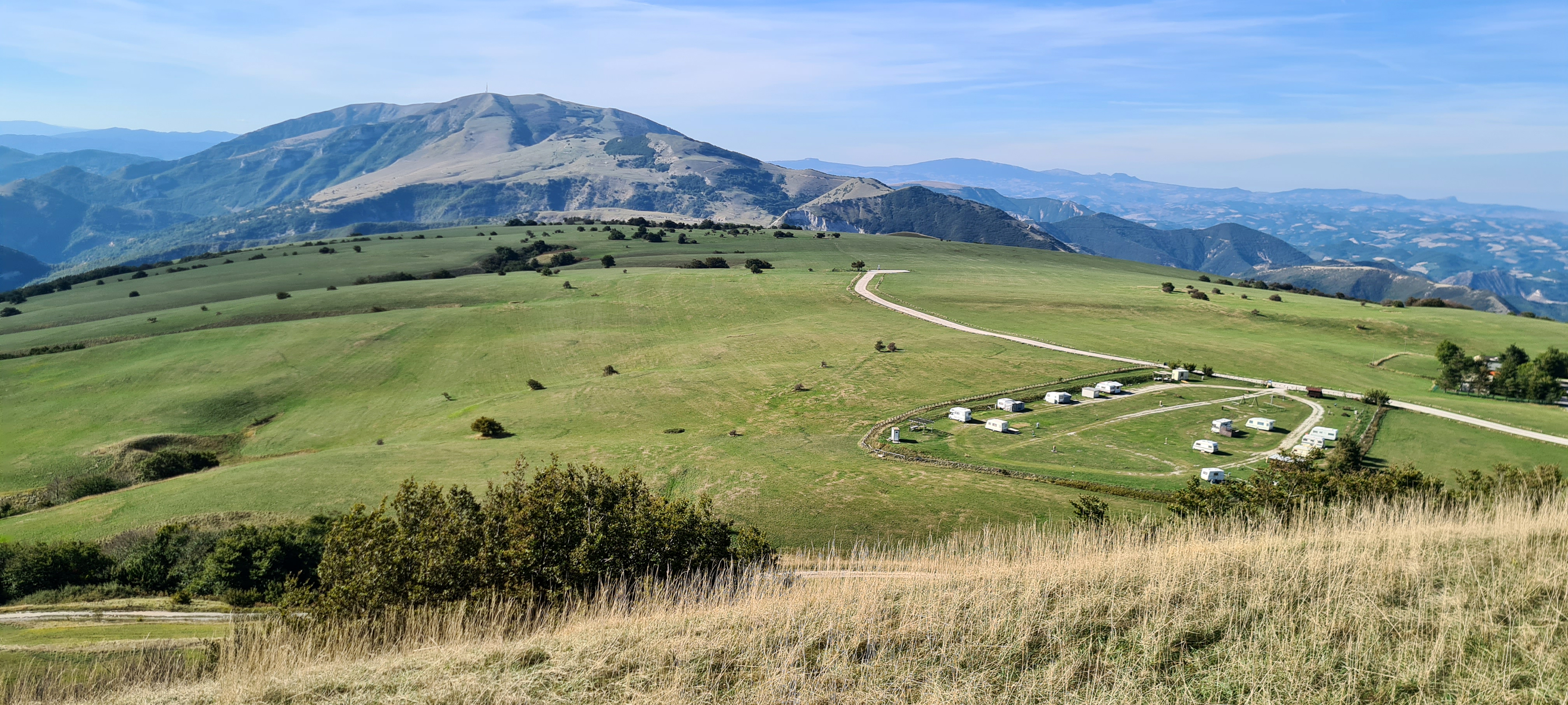 Situato in posizione centrale tra i massicci del Nerone e del Catria, il Monte Petrano, con i suoi 1162 metri di altitudine è la più bassa tra le cime principali dell'Appennino Pesarese, distinguendosi tuttavia dalle altre cime per la particolarità del proprio aspetto. Si tratta infatti di un vastissimo altopiano con immensi prati sommitali posti alla quota di 1100 metri (la vetta si erge di ulteriori 60 metri su una caratteristica formazione detta "La Rocchetta"), che grazie anche alla posizione baricentrica permette di godere di spettacolari viste panoramiche sia sulle vette maggiori che lo affiancano, che su tutta la Provincia di Pesaro e Urbino, fino al Mare Adriatico ad est, al Monte Carpegna ed alle rocche di San Marino a nord-ovest, finanche all'interminabile susseguirsi di boscosi rilievi volgendosi a sud, verso l'Umbria.
