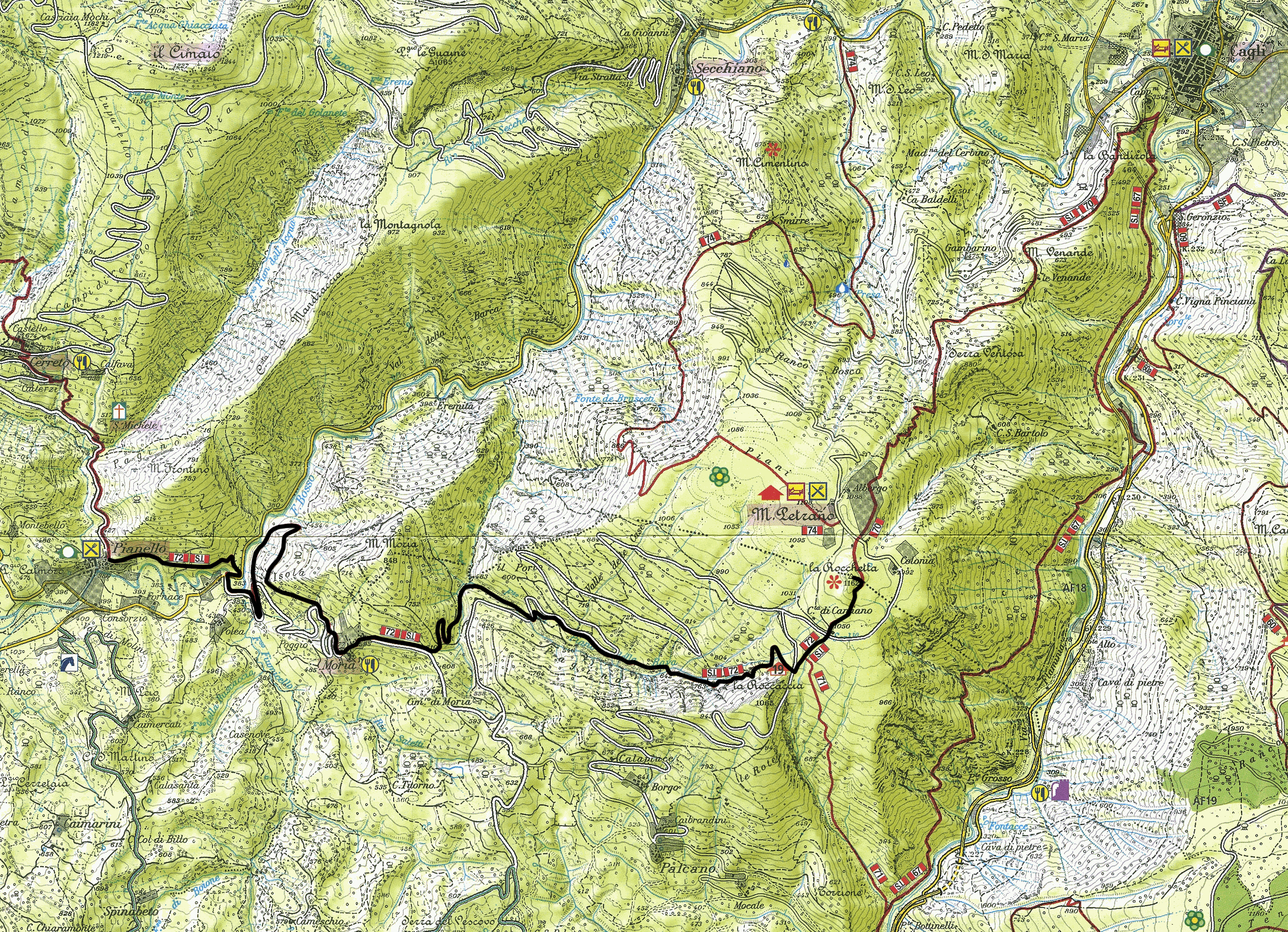Purtroppo nella parte finale, quando già si è in vista del paese, la traccia si perde nel sottobosco fino a sparire completamente, ed è necessario farsi largo (faticosamente) tra rovi e piante di ortica, in una esperienza certamente non troppo piacevole (un po' di manutenzione di questa parte di sentiero non guasterebbe, peraltro si tratta di una parte del Sentiero Italia...), fino a sbucare tra le case in corrispondenza di una fontana (sosta consigliata per il rifornimento dell'acqua).