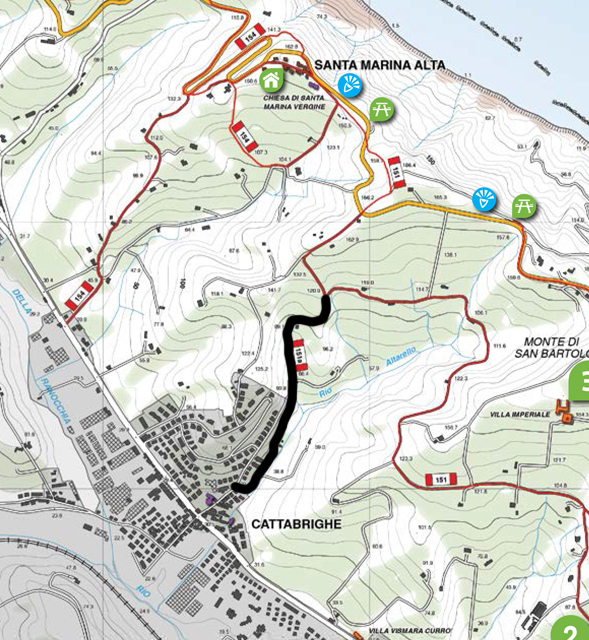 Il sentiero 151a è un piccolo tratto di raccordo che unisce la frazione di Cattabrighe con il sentiero 151, il percorso principale che attraversa l’intero territorio del Parco San Bartolo.