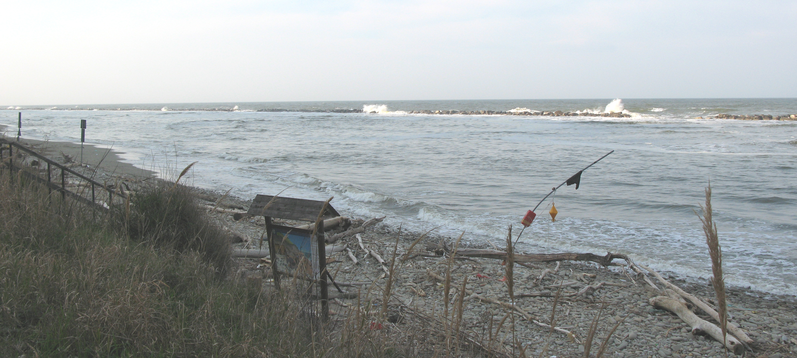 Scendendo lungo i tornanti si può ammirare un panorama veramente spettacolare, con ampie vedute della caratteristica falesia a picco sul mare che costituisce l’elemento paesaggistico più importante del Parco San Bartolo. Percorso poco più di 1km di strada, lungo la quale sono state sistemate panchine nei punti panoramici e fontanelle in cui dissetarsi, si raggiunge infine la piccola spiaggia, formata dai caratteristici cogoli arrotondati ed incastonata in un ambiente selvaggio ed affascinante.