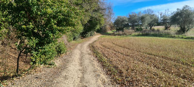 Da qui si prosegue inoltrandosi nel paese, seguendo i numerosi segni presenti ai margini della sede stradale, imboccando e percorrendo per intero Via della Cupa, prima di svoltare a sinistra su Strada Fonte, da dove inizia un nuovo tratto in salita. Si percorre la via costeggiando alcune abitazioni e si giunge quindi ad un nuovo incrocio, in corrispondenza del quale si abbandona l'asfaltata per svoltare a sinistra su di una stradina bianca che si inoltra nei verdi campi soprastanti.