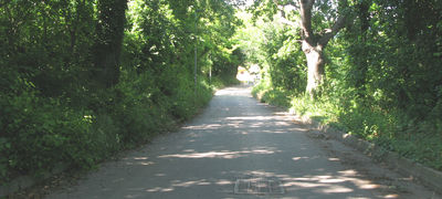 Si raggiungono in breve tempo alcune costruzioni, tra le quali vi è, sulla sinistra, la Chiesa del Palazzo. Superata un'ultima abitazione l'asfaltata si tramuta in sbrecciata mentre si prosegue ancora in discreta pendenza costeggiando un piccolo fossato che si attraversa più volte mediante alcuni ponticelli di legno, immersi in un affascinante panorama rurale.
